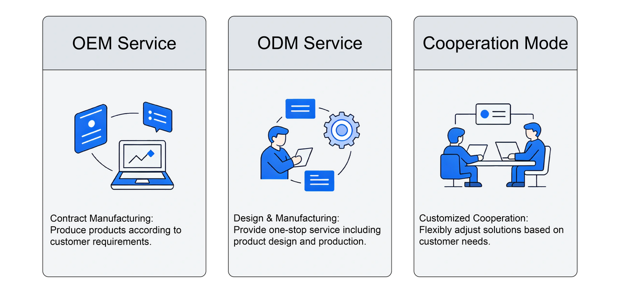 We manufacture products according to customers' existing designs, specifications, and brand requirements. Customers provide detailed technical drawings, material standards, and quality benchmarks, while we are responsible for the entire production process from raw material procurement to finished product delivery.